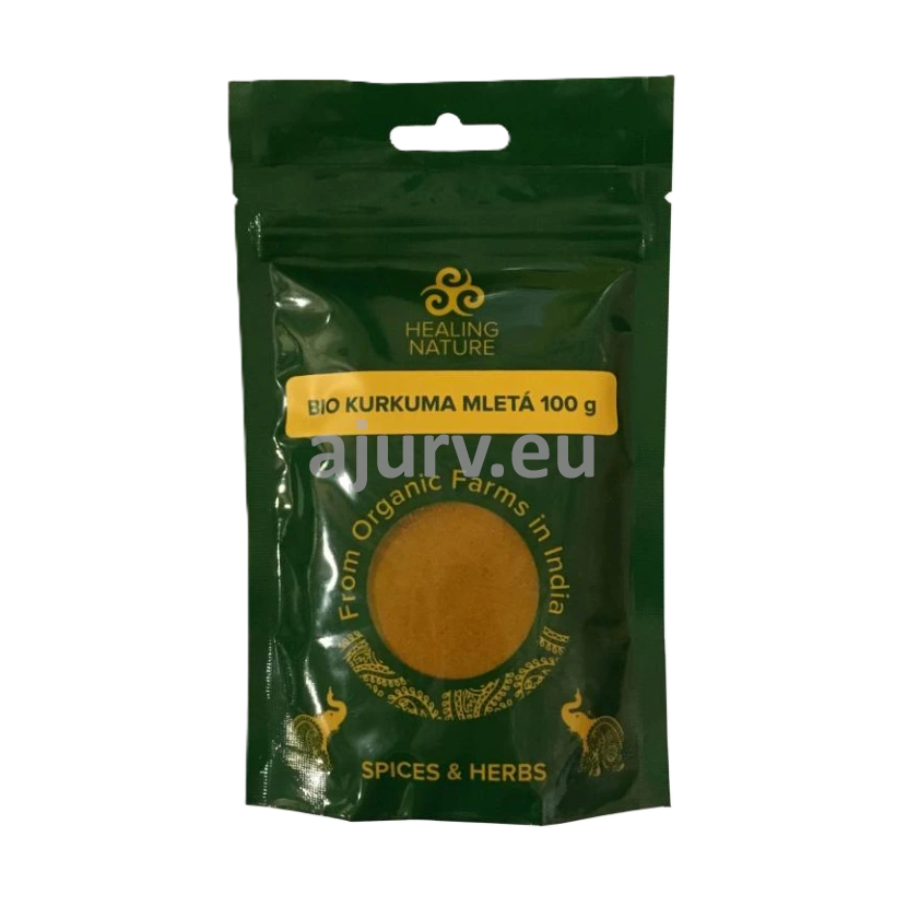 Kurkuma patří podle ájurvédy mezi tzv. hřejivé byliny, podporuje trávení a stimuluje produkci žluči. Pomáhá harmonizovat hladinu cukru, triglyceridů a cholesterolu v krvi. Kromě vnitřního užívání má kurkuma své místo také jako rychlá pomoc při různých poraněních. Pomáhá při hojení ran, čistí poškozenou tkáň a zároveň podporuje růst nových a zdravých buněk.